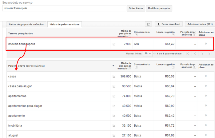 Para uma análise mais minuciosa, você poderá utilizar a ferramenta Google AdWords Keyword Tool do Google.