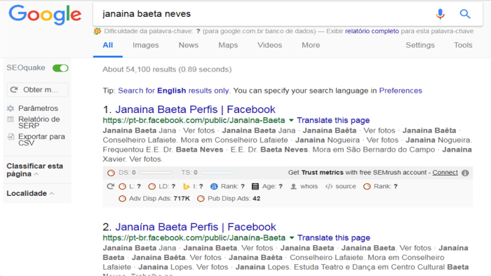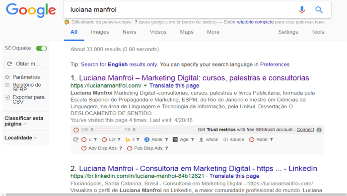 Faça você mesmo o teste. Abra o navegador do Google e escreva o seu nome. Qual foi o primeiro resultado que apareceu? E o segundo?