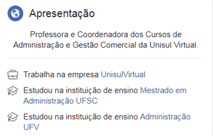 Entrando em seu perfil no Facebook, a sua descrição é:
