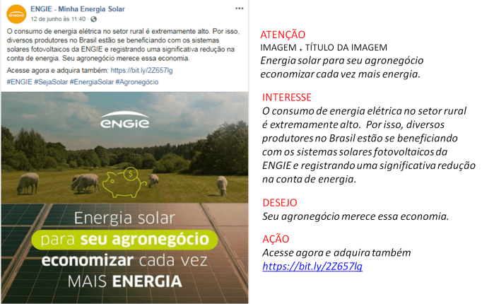 Ela inicia com uma abordagem que chama a atenção, através do título e∕ou imagem. Em seguida, passa uma informação que cria um interesse. O interesse pode partir de algo específico, como uma promoção de um produto; ou de uma generalização, como no caso da publicação abaixo, que não discrimina a quantidade, mas que enaltece o sucesso da marca e seus produtos porque leva a pensar que são muitos os produtores: “diversos produtores no Brasil estão se beneficiando”.