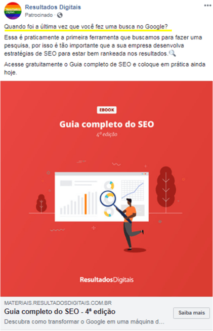 Este foi um exemplo de uma técnica muito utilizada na publicidade e que tem sempre ótimos resultados. Veremos a seguir outras formas de se trabalhar o texto de uma publicação nas redes sociais.