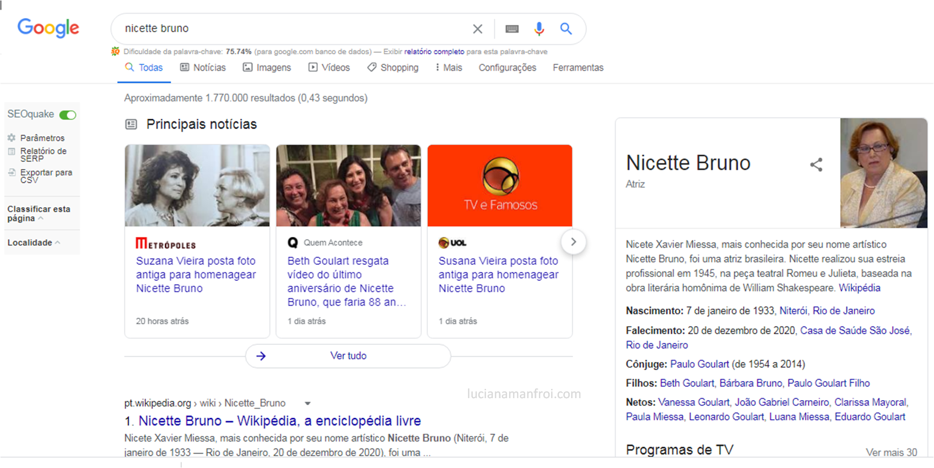 Ranking do resultado da busca Paolla Oliveira no Google.
